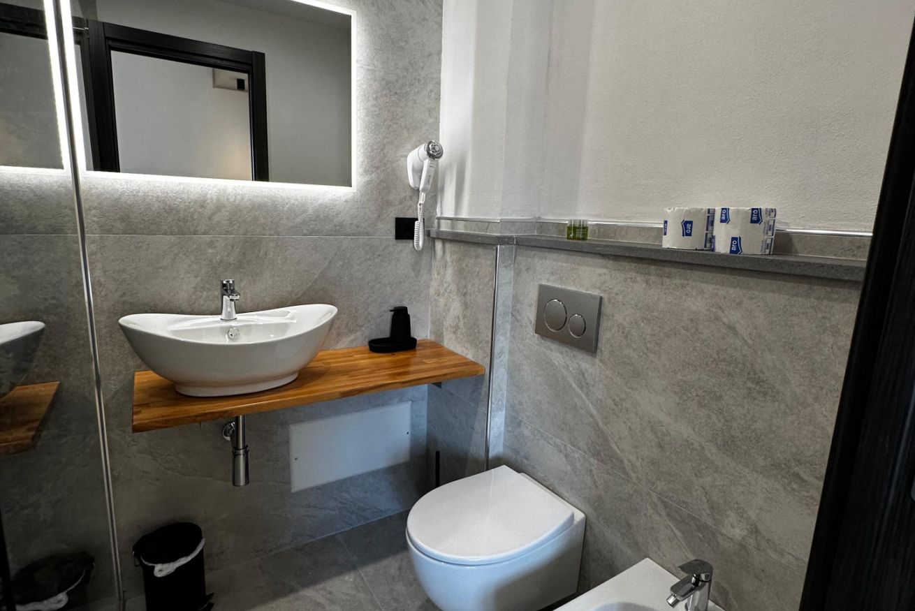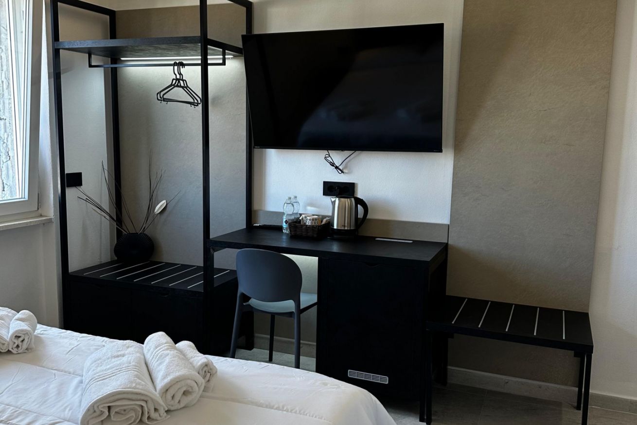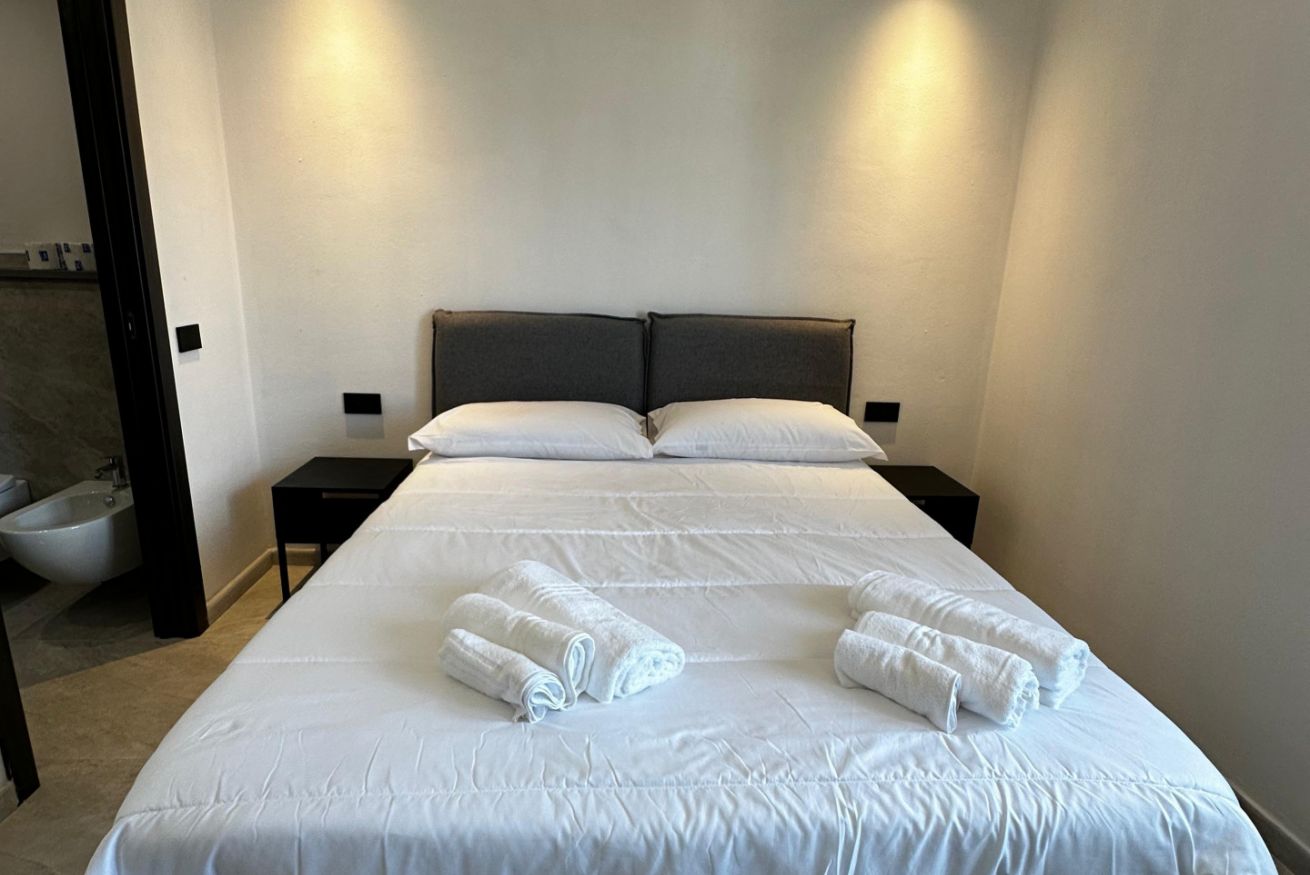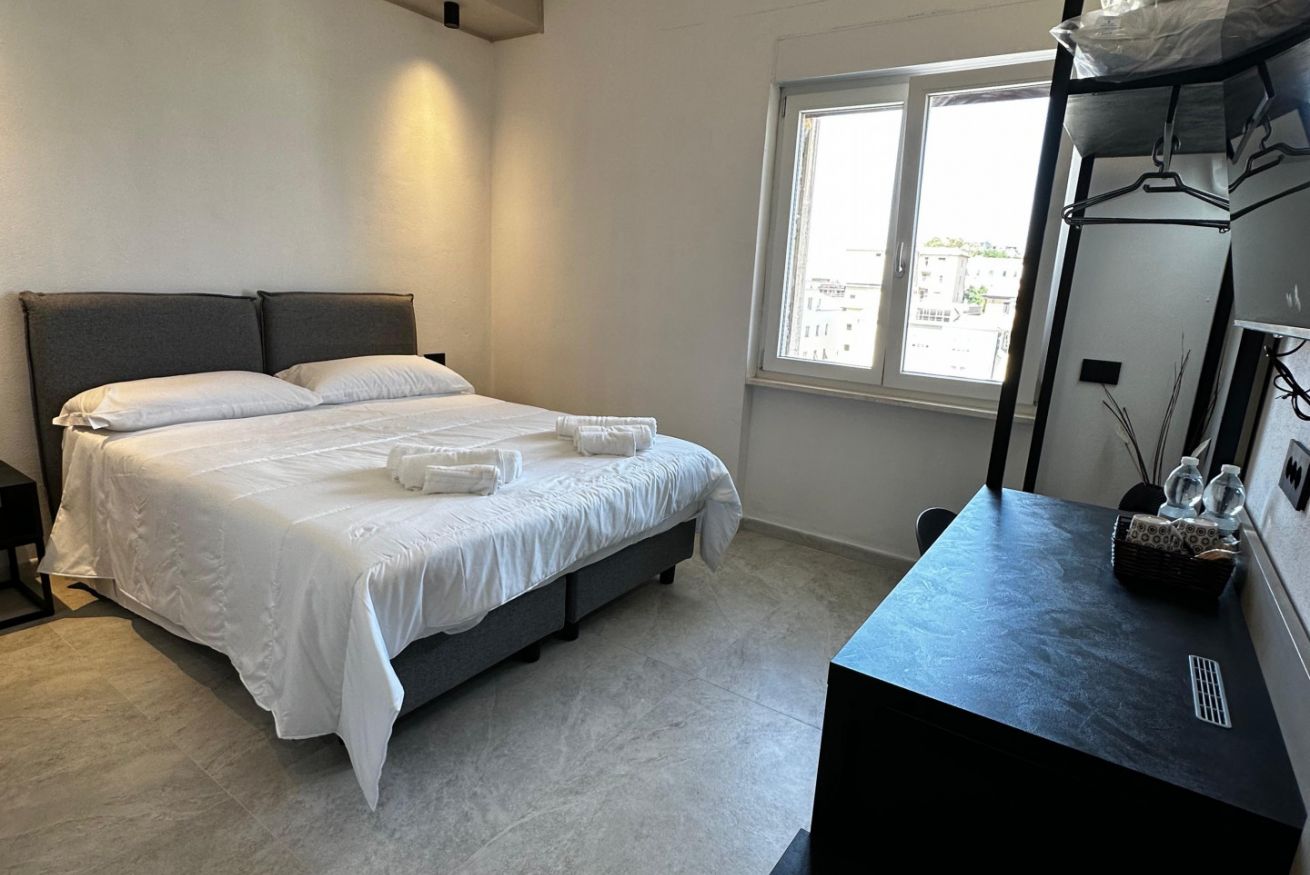 Double or Twin Room, with the possibility to set up one double bed or two single beds upon request.Ideal for couples, friends, or colleagues.The room features a private en-suite bathroom, wardrobe, desk with chair, air conditioning, and a 40-inch Smart TV.Shared use of the kitchen is included in the price.